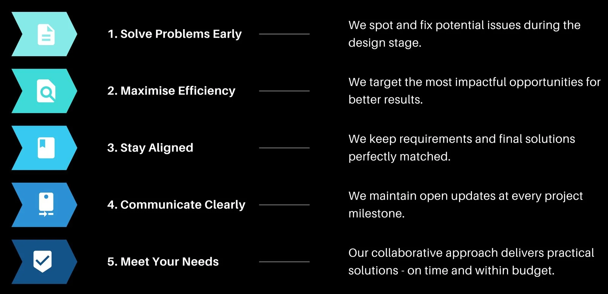 Our structured approach to mechanical engineering and process automation follows five key stages: